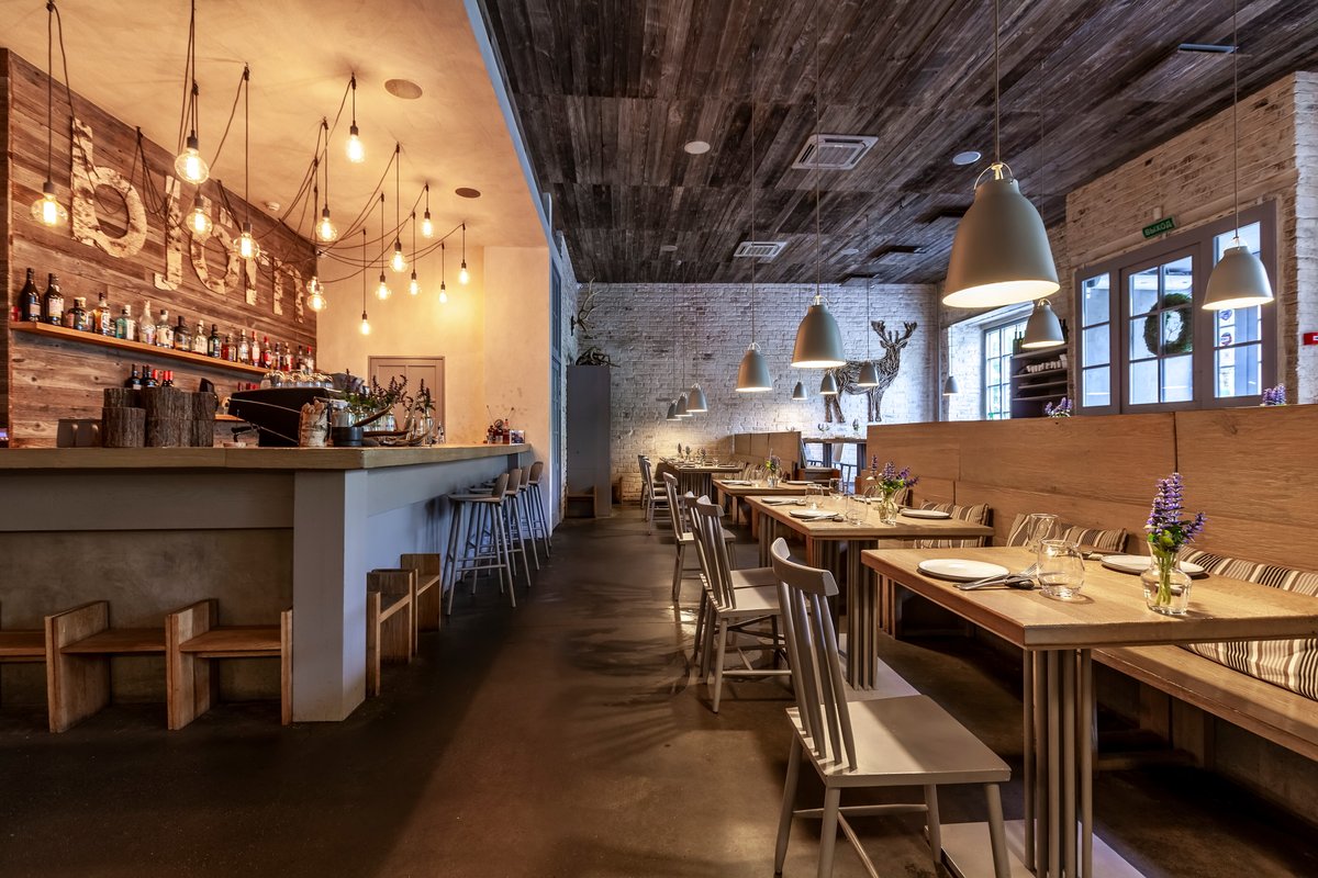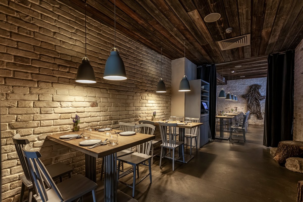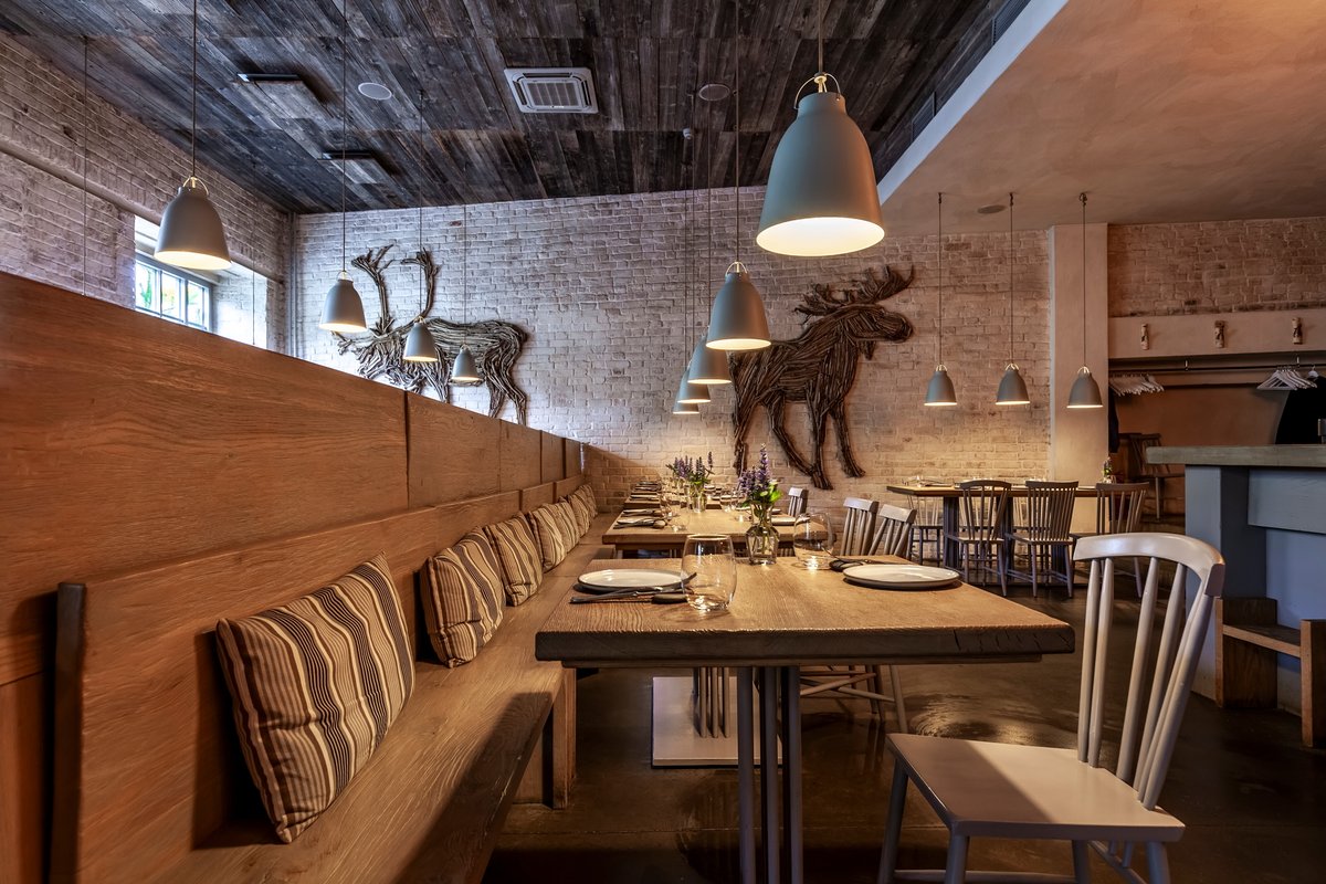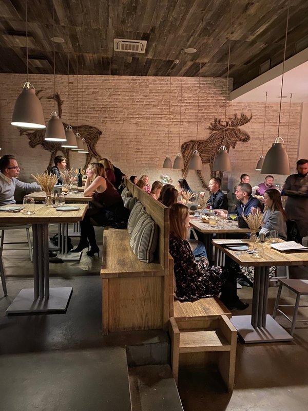 Ресторан просто потрясающий! Здесь прекрасный сервис, необычный аутентичный интерьер и великолепная кухня. Официанты приветливые, с глубоким знанием меню и отличным пониманием запросов. Атмосфера уютная, интерьер подчеркивает концепцию кухни, всегда приносят комплимент в виде закусок и хлеб с маслом собственного производства. Часто хожу туда и пробовал почти всё, особенно люблю котлеты из лося и различные тартары, мясо просто потрясающее. Также здесь очень вкусные лимонады и коктейли собственного производства. Очень приятно возвращаться снова и снова!