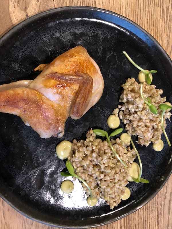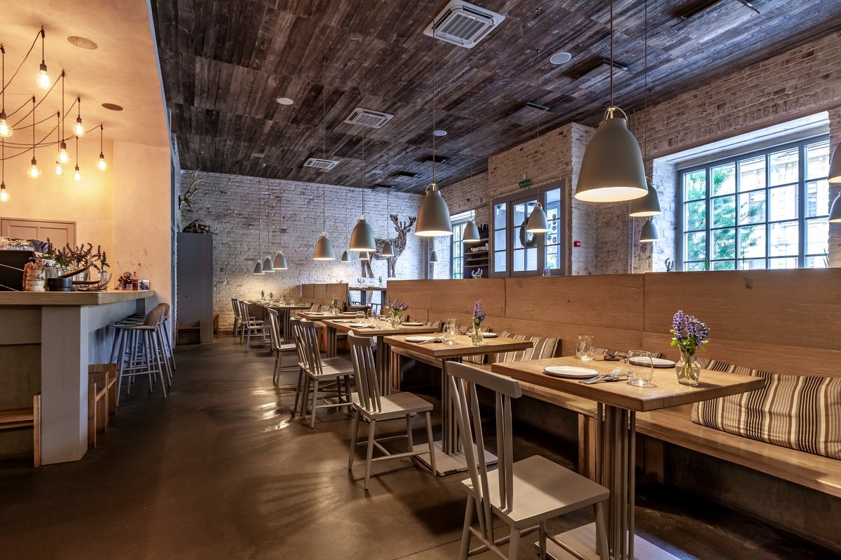 Козленок с жареными капустными листьями, ливерпустай на сене с мёдом, паштет из свиной печени и сморреброды с черными лисичками оказались восхитительными блюдами с необычными вкусовыми сочетаниями. Кухня радует стабильным качеством приготовления, подача происходит быстро, а атмосфера заведения всегда остается приятной. В последний визит наша компания состояла из 4-х человек и все остались довольны как едой, так и общим впечатлением от посещения.