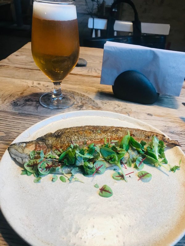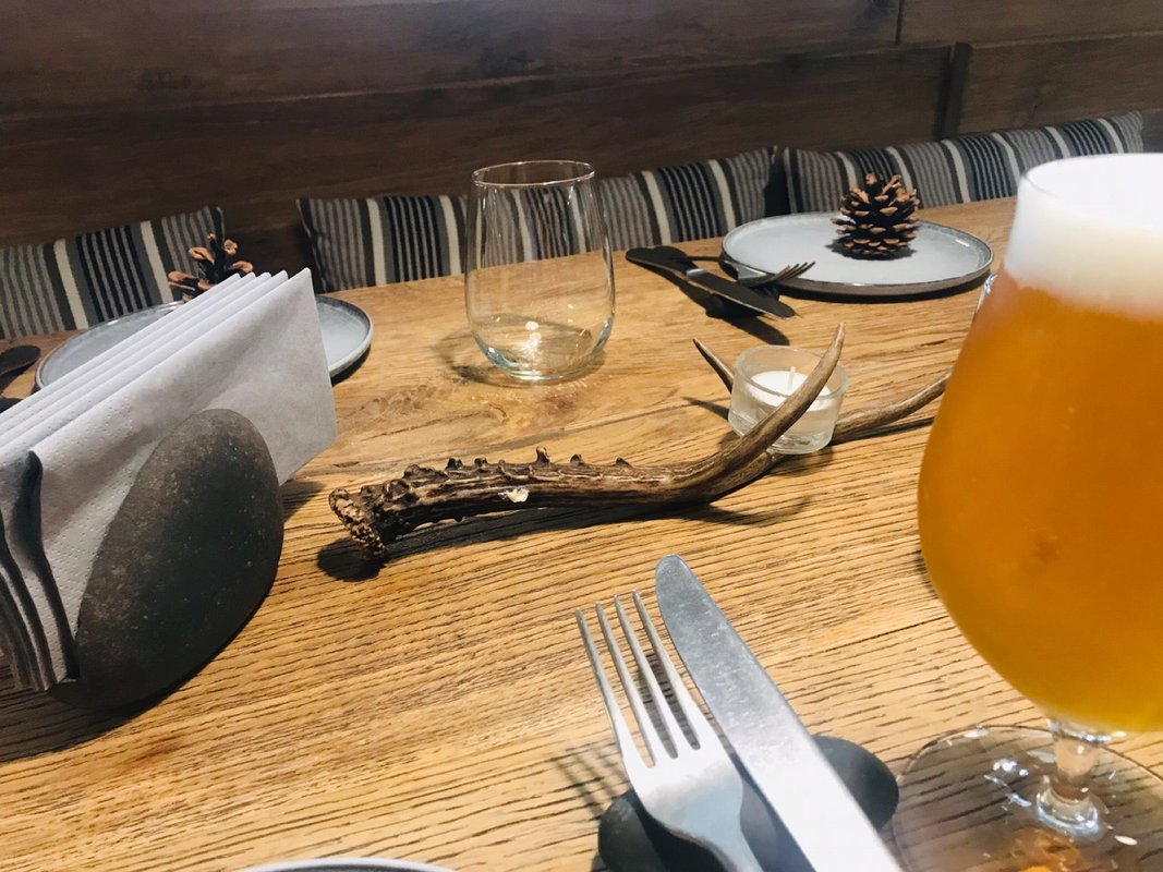 Вкусно и атмосферно! Заказывали сморреброд из кабана и пиво, всё было отлично. Особенно впечатлил официант: подробно рассказывал про блюда - из чего, как едят, рекомендовал напитки, помогал с выбором. Интерьер простенький, ненавязчивый, но в целом приятный.