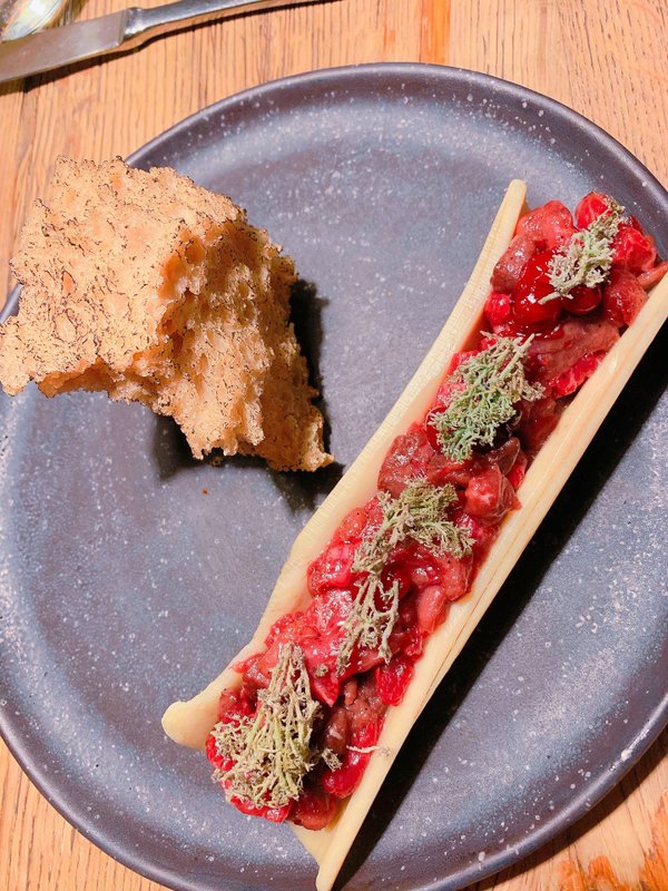 Ресторан предлагает отличные блюда, больше всего запомнилось нежное мясо с соусом из свеклы и копчёная утка. Тартар оказался не менее вкусным, а лимонад с вишней приятный. Официант был внимательным и доброжелательным!